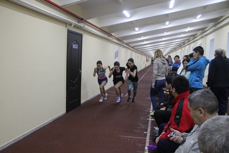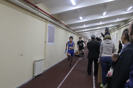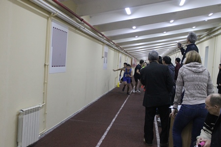Результаты показанные юными легкоатлетами не радуют глаз — виной тому сам манеж — со старым покрытием, узкий, с резким., практически сразу на 180°, поворотом на обоих концах… Конечно, это нонсенс, имея такой красавец «Триумф», на худой конец более широкий и вместительный манеж «Юность», «загнать» первенство республики в этот манеж, не отвечающий современным требованиям. Большинство юных легкоатлетов теснились в «прихожке» в ожидании своего старта или сидели по раздевалкам — на дорожке только участники идущих стартов, судьи, тренеры…