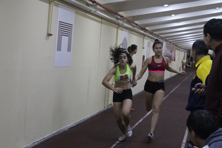 Степановой Анне не много не повезло — на 60 м с дорожкой, бежала по ближней к стене дорожке, где батареи отопления чуть не задевают колен, а на 200 на второй поворот зашла слишком быстро и ее занесло… Итог два 4 места… Очень надеемся, что Аня скоро избавится этого проклятия четвертого места, уж не коллекционировать же их…